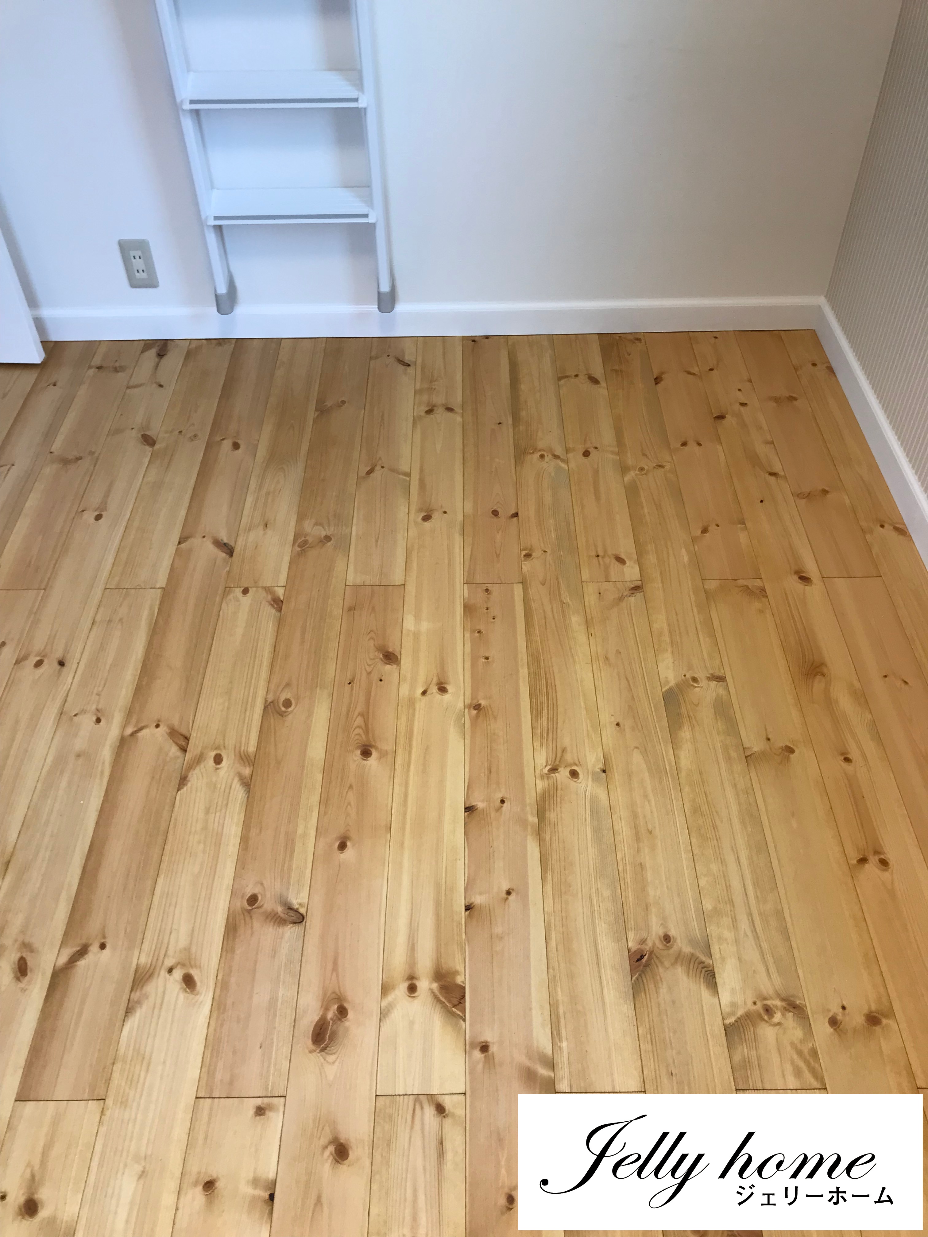 レッドパインの床には自然塗料のリボスを塗って仕上げている。