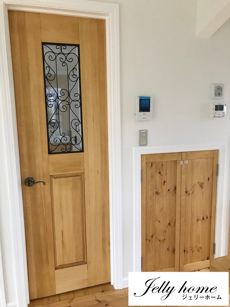アイアン入りのリビングドアも建具屋さんに作ってもらった。↓