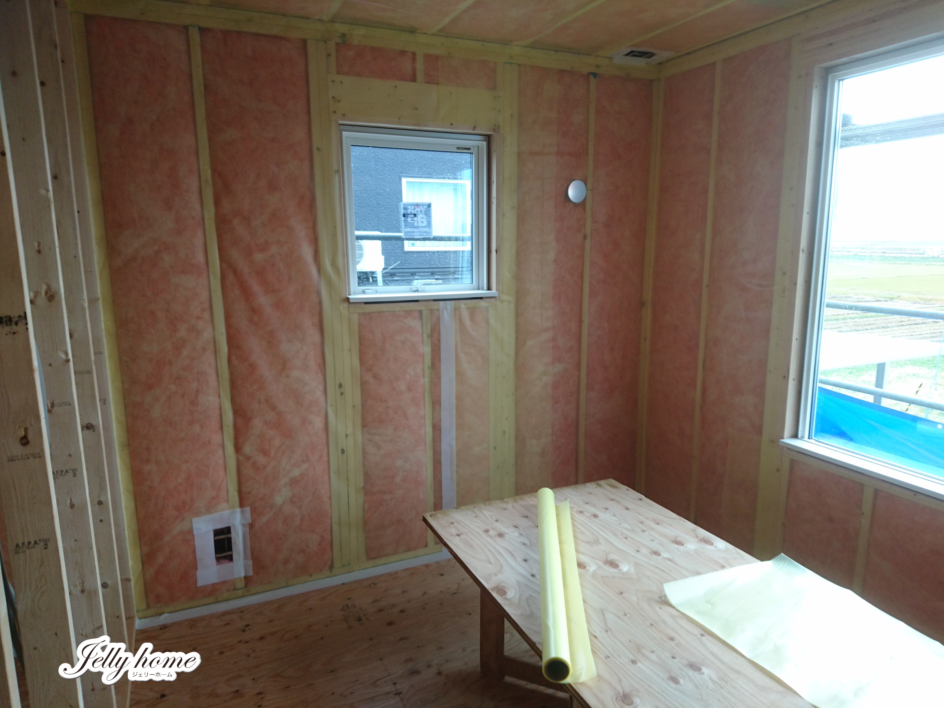 当然のことだが、完成して見えなくなってしまう壁断熱材の