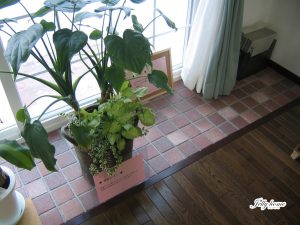 リビングの窓際を植栽コーナーとしてタイル貼りにしたりとか、