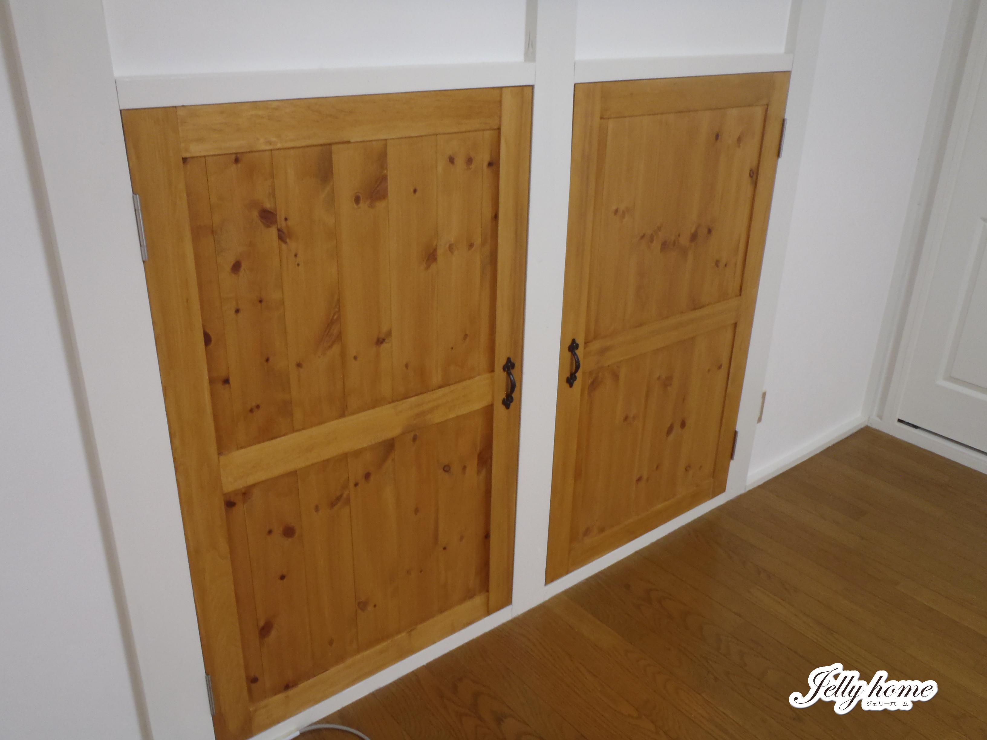 リボス塗装で茶色く仕上げた扉は、白い壁に上手く溶け込んでますね。