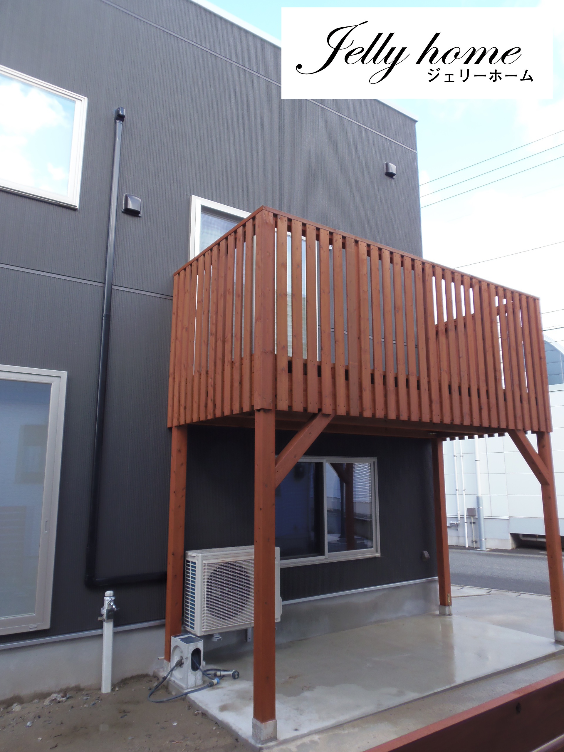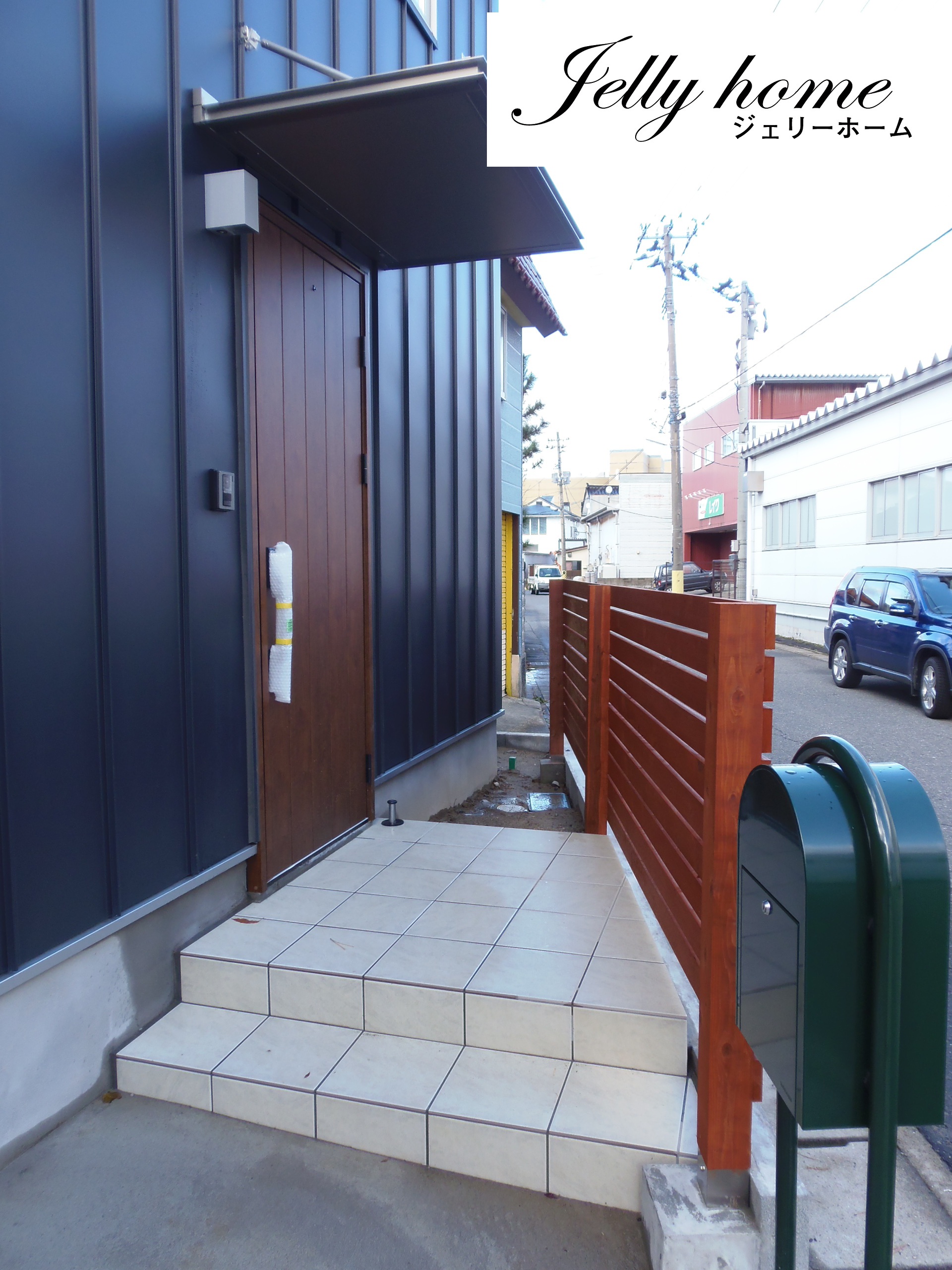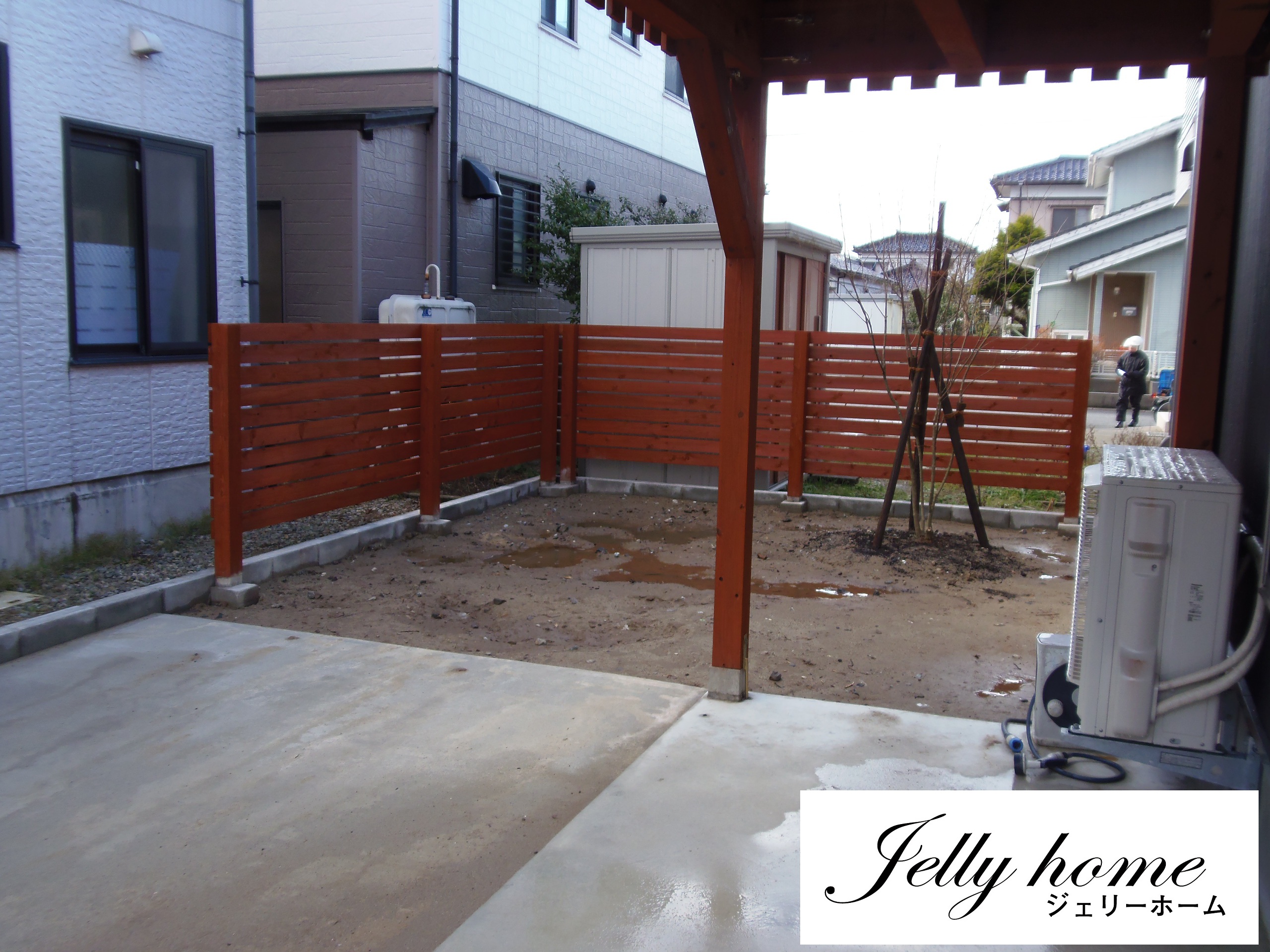 玄関前と庭の後ろには木製フェンスを取り付けて、