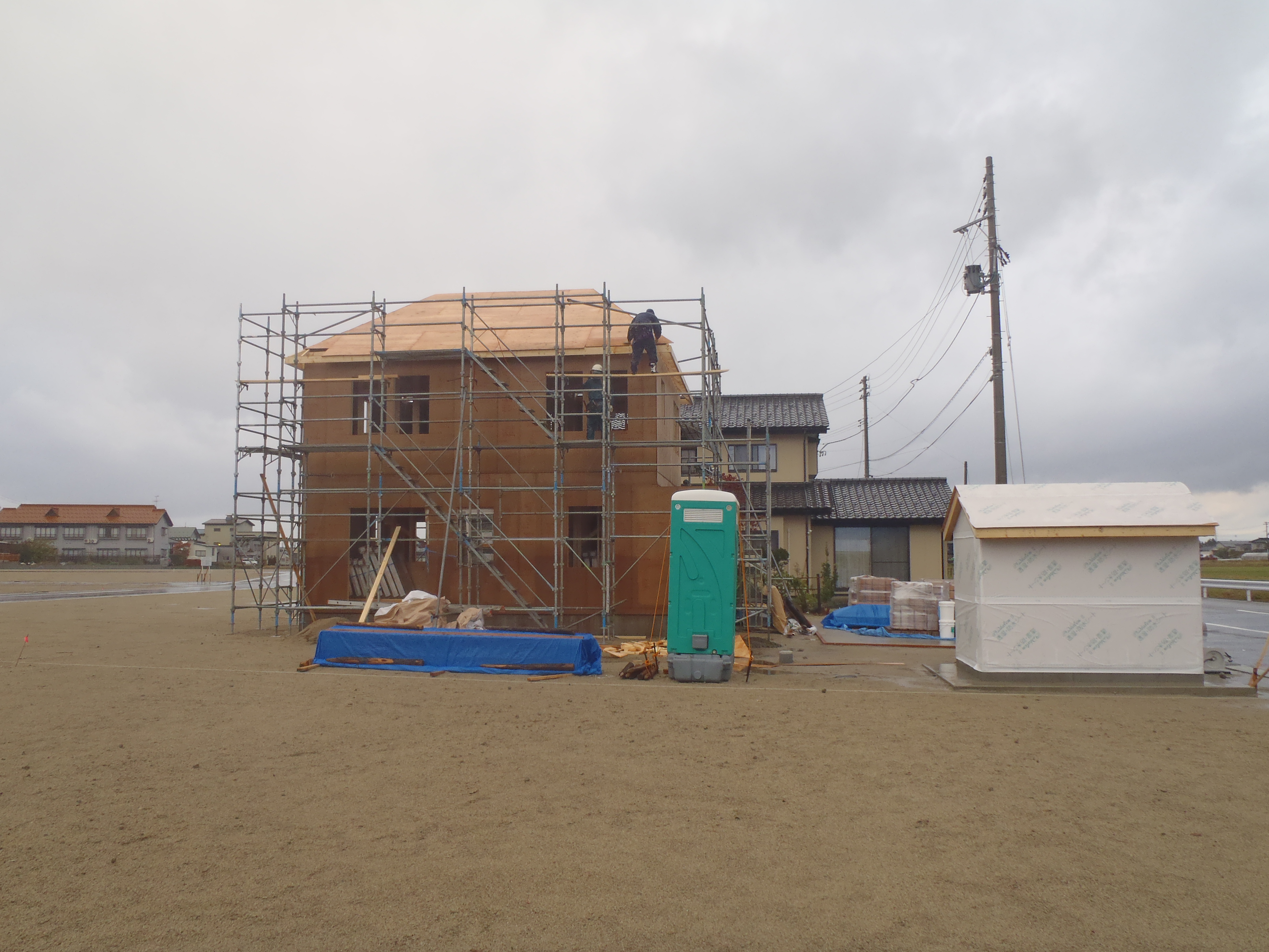 それでも何とか屋根の野地板までは辿り着き、一安心といったところです。