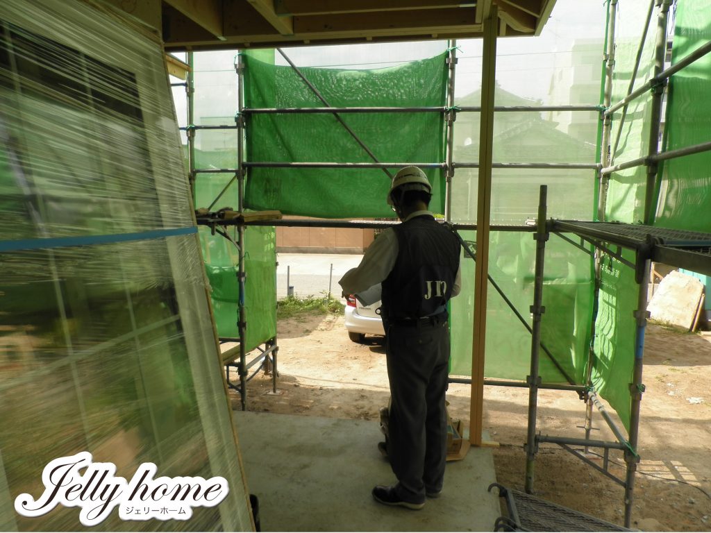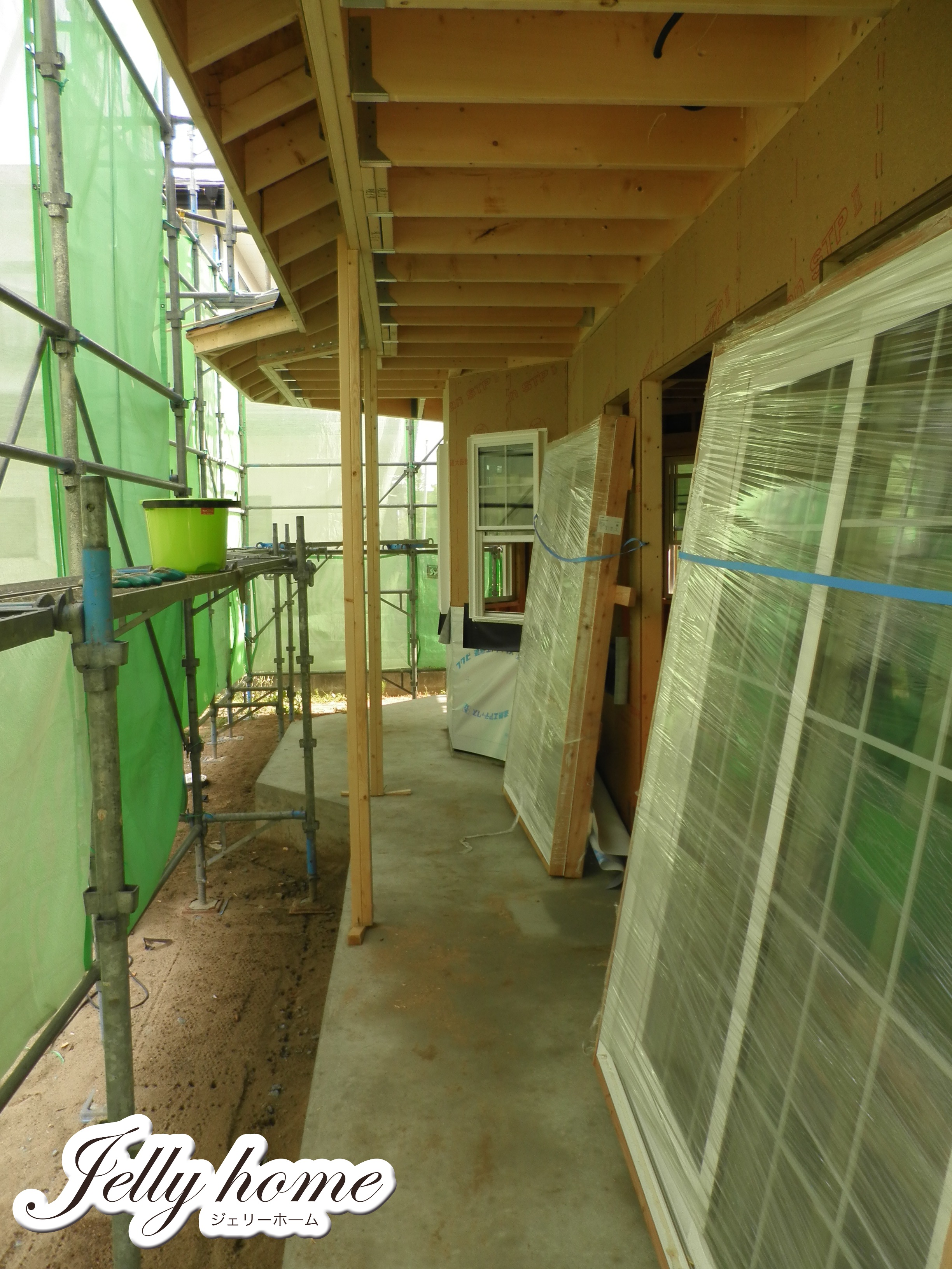 カバードポーチの屋根も綺麗に納まり、昨日は「JIO」の構造体検査があり、