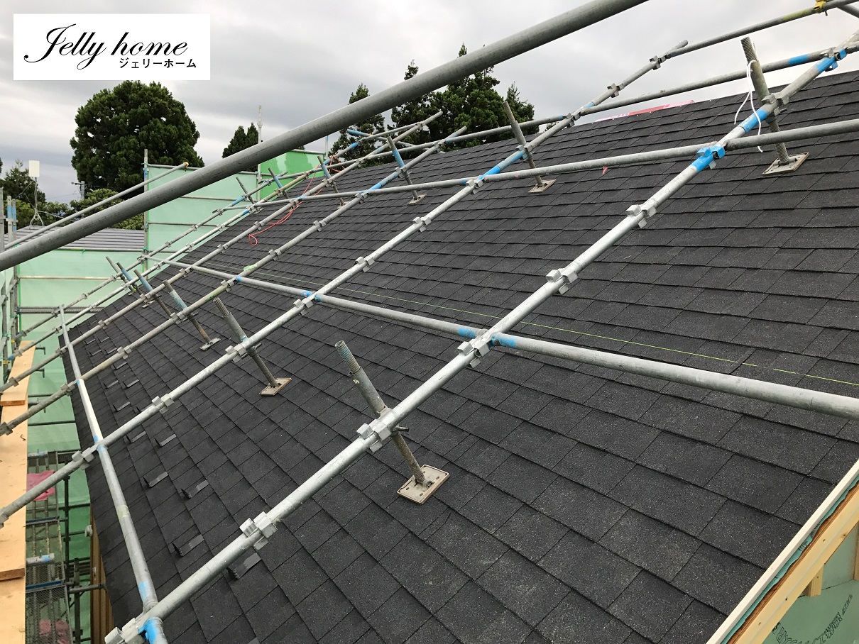 鶴岡市小真木原町で建築中のフレンチスタイルの家。