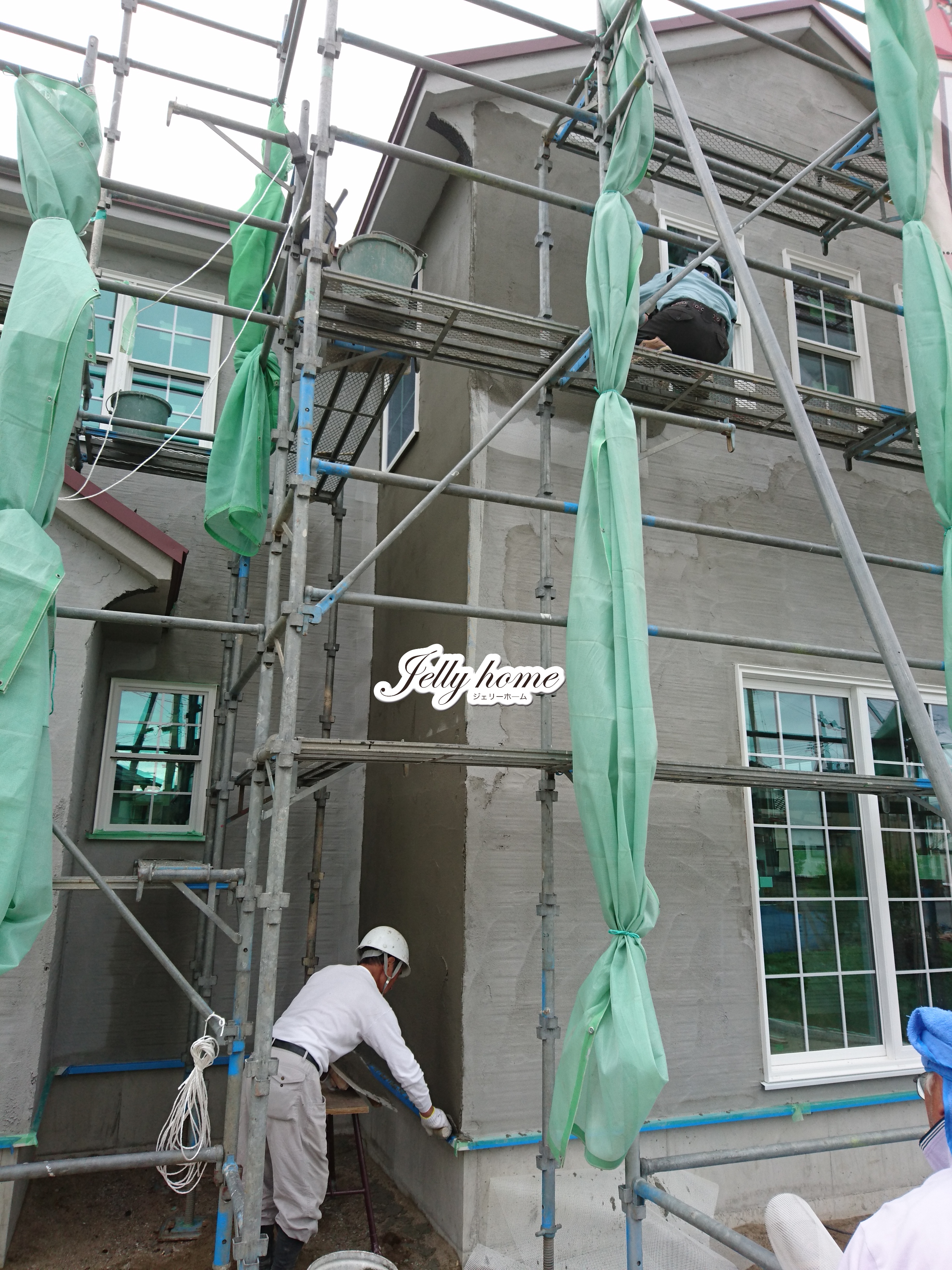 下地モルタルの中塗りに着手したsmall provence。