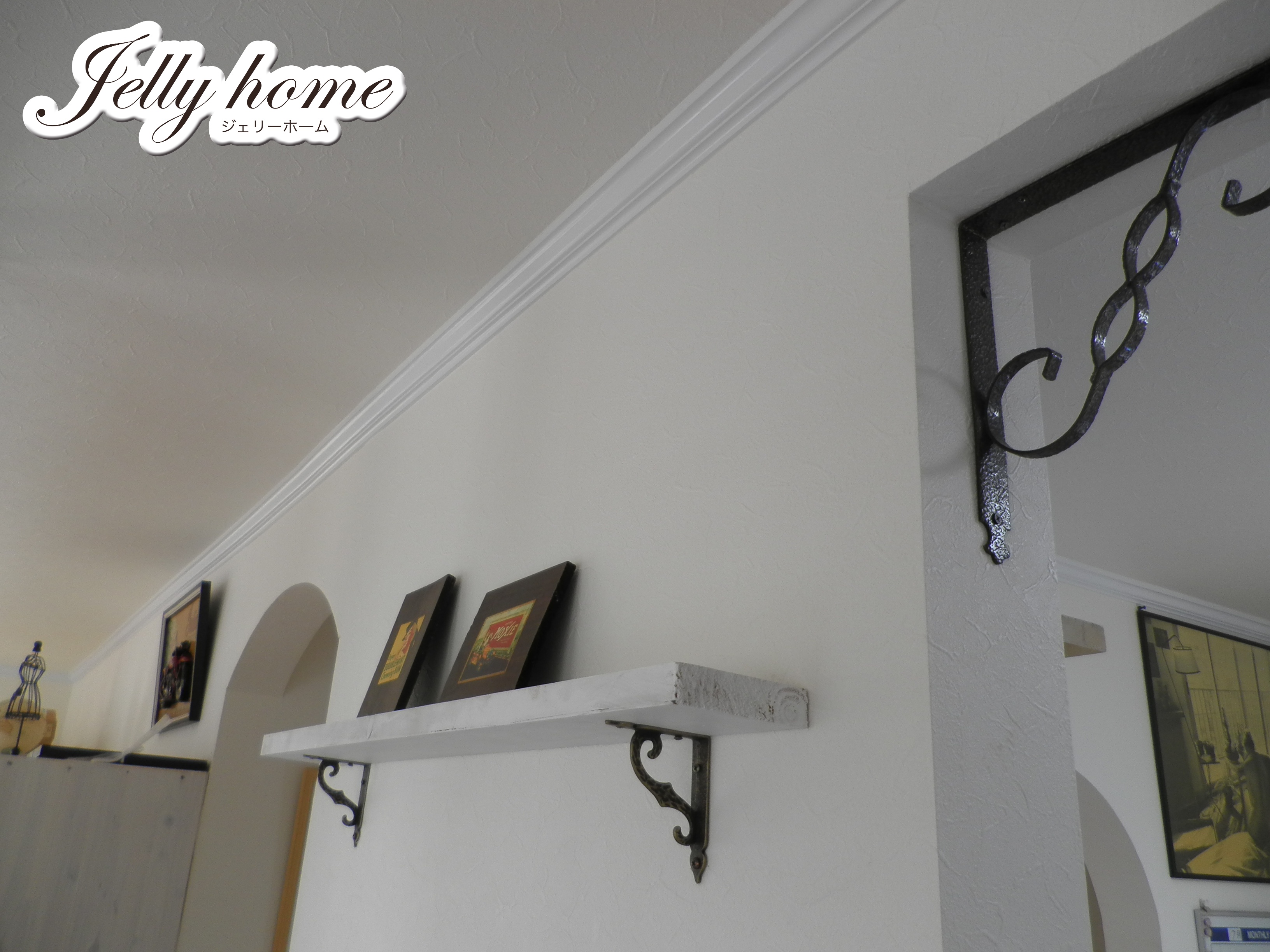 まずは、DIYで作った飾り棚と壁のコーナーアイアン。