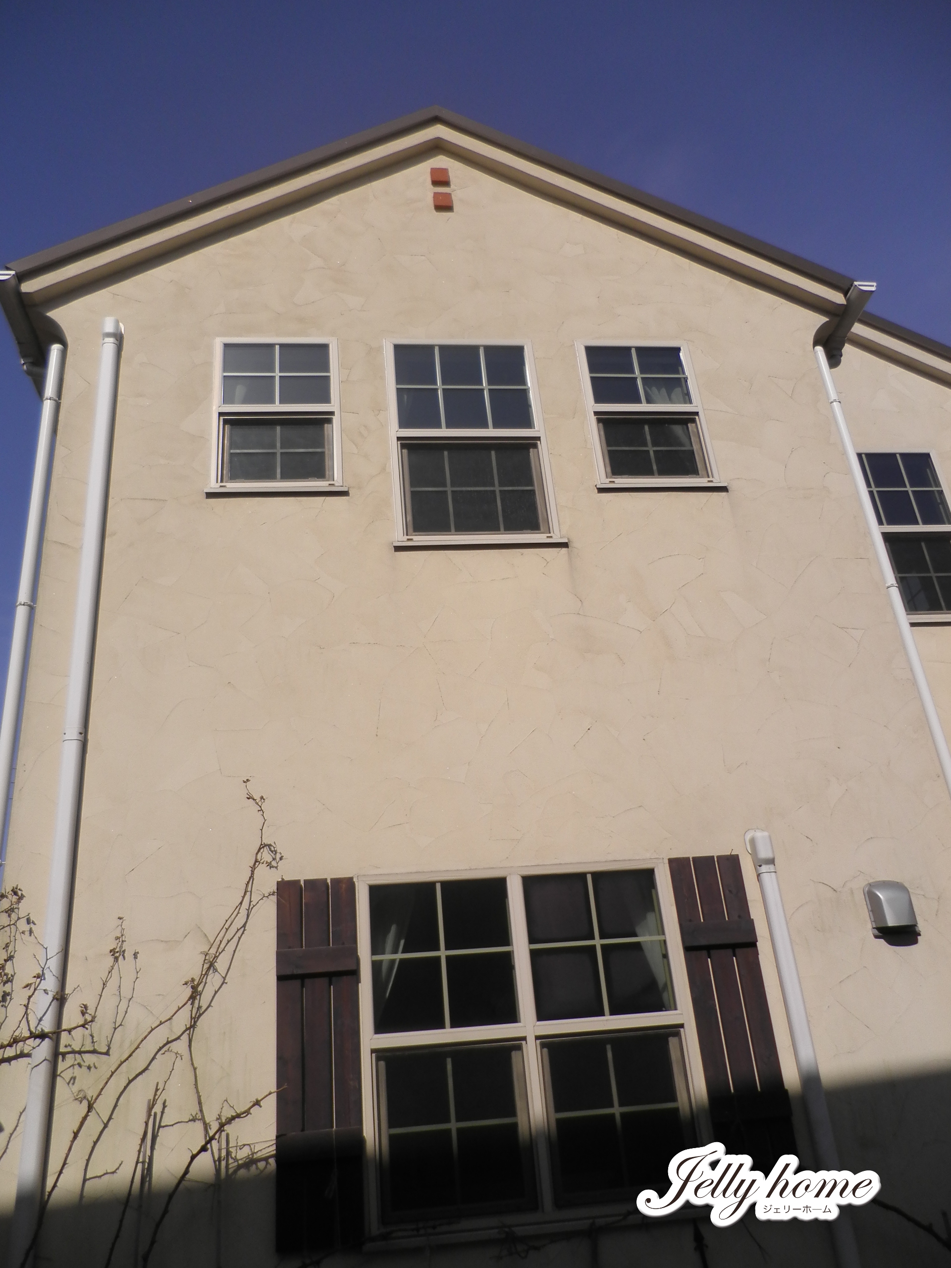 外壁スタッコの塗り壁は大気の汚れが付着したせいもあり、