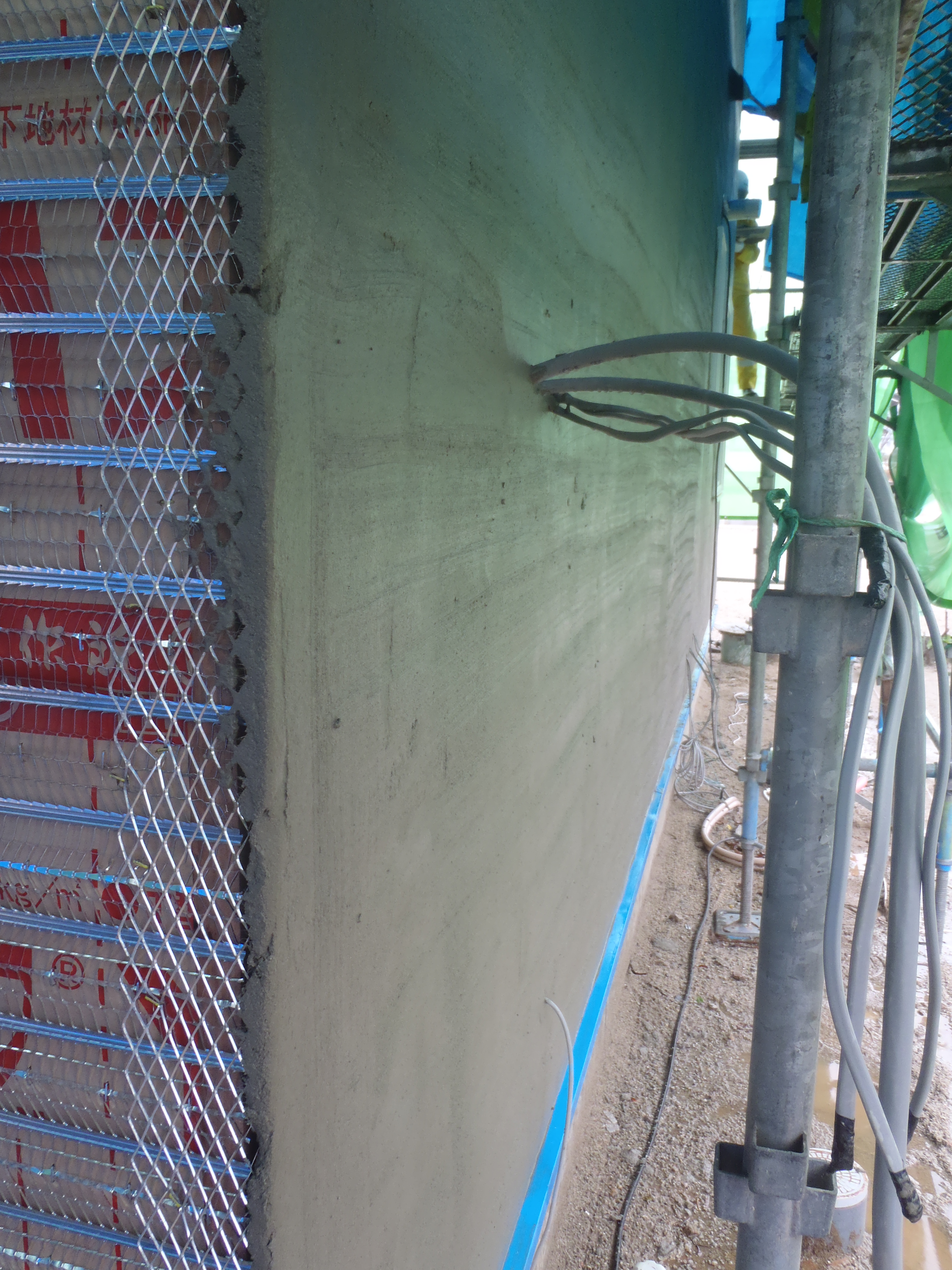 外壁のモルタル塗りの施工に入ったと思ったら急に寒くなり、