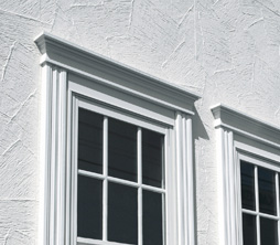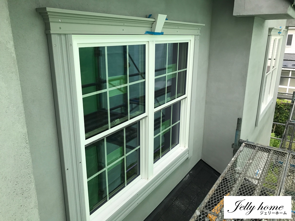 外壁に取り付けた窓周りのモールディング