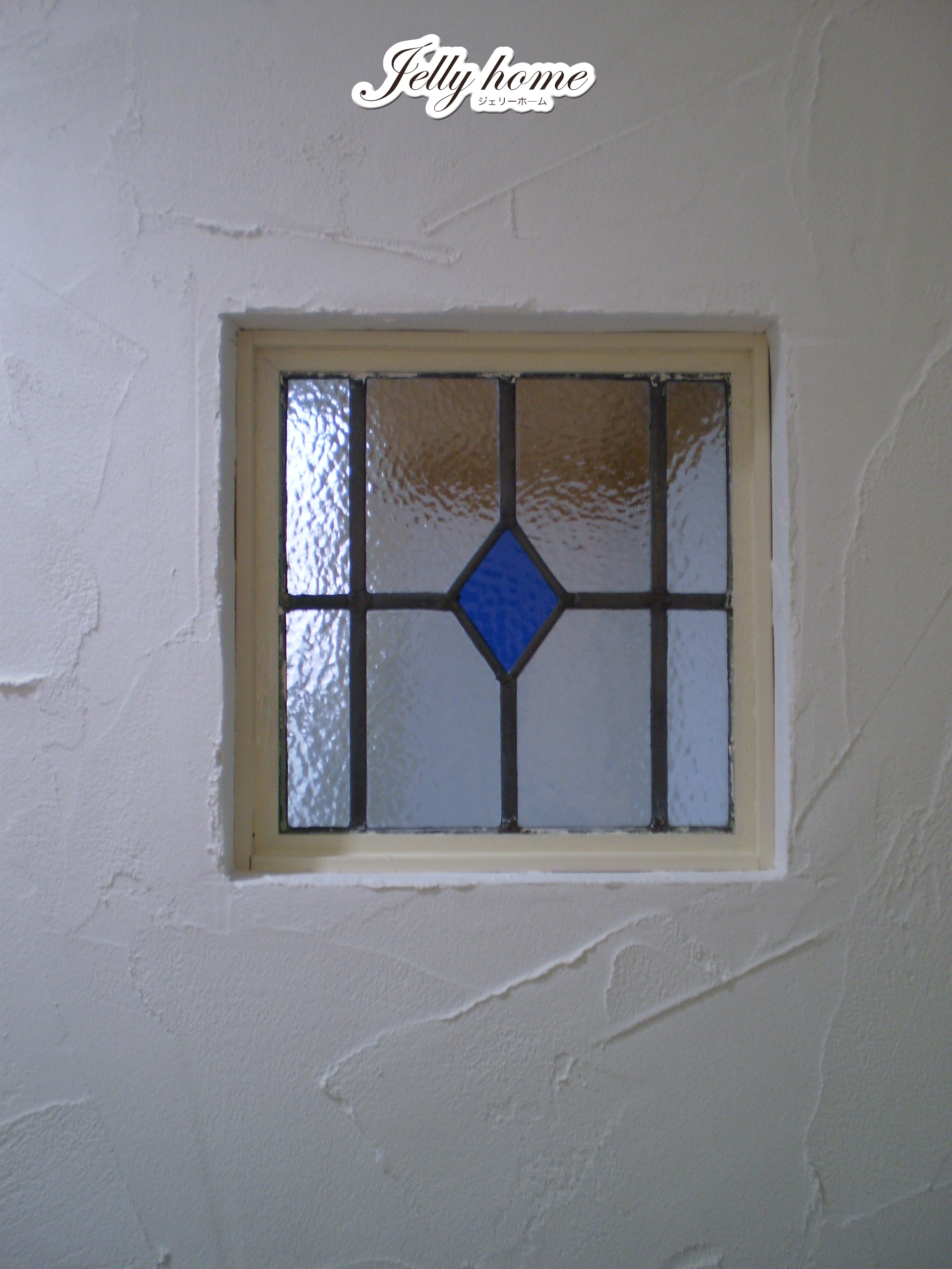 スイス漆喰の壁に埋め込んだステンドグラスは、