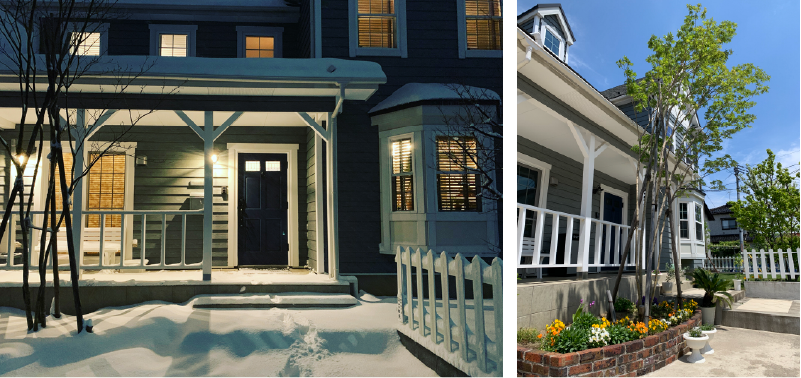 アメリカンハウスの外観らしさのある、デザインアクセントにもなっています。