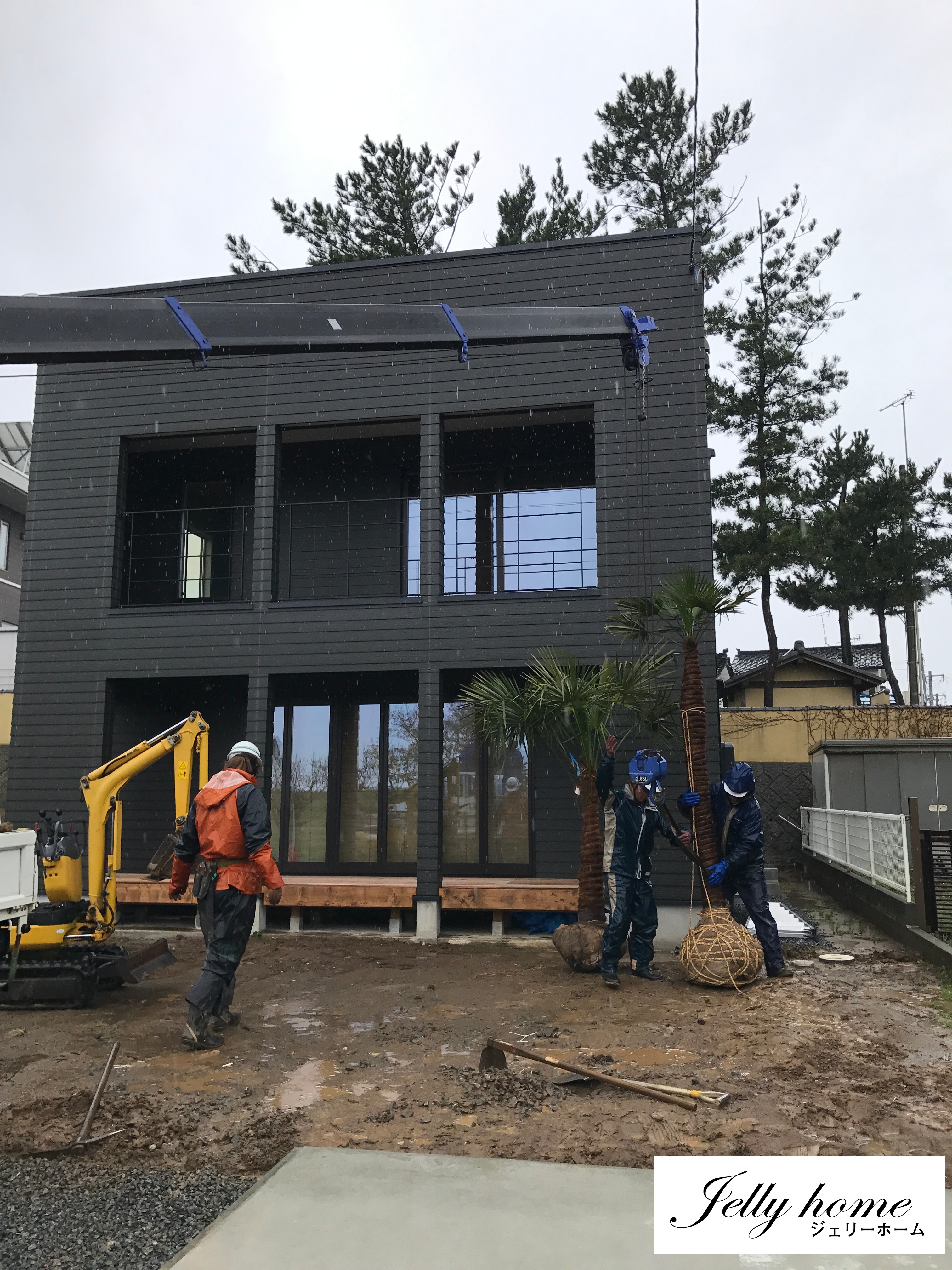 芝生を張って植栽を何本か立てて、見栄えを良くする。