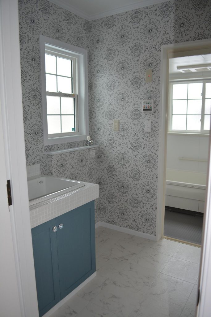 トイレ共々、水廻りの清潔感が強調されていて、とても爽やかな印象に見えます。