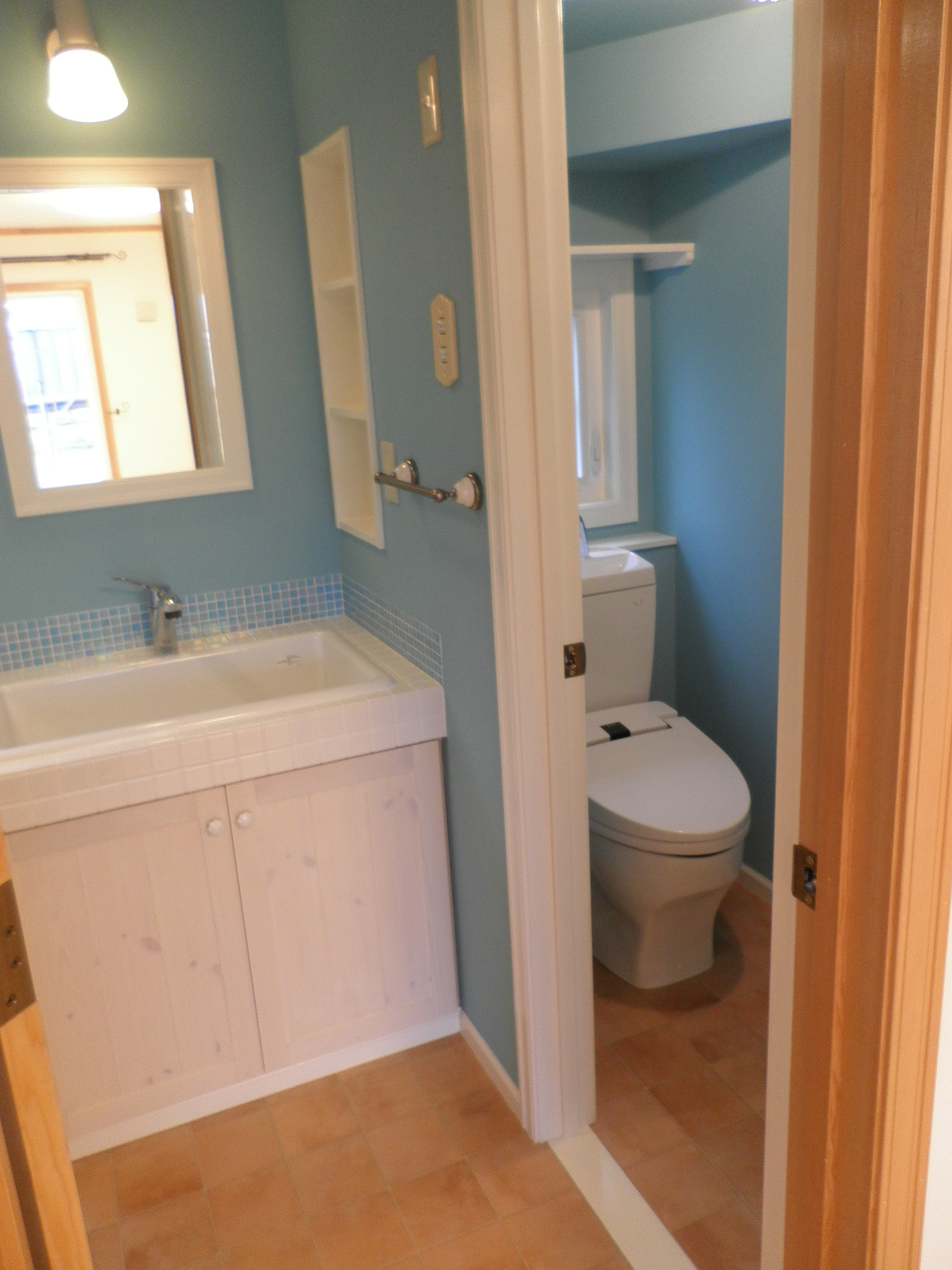 北欧スタイルを貫きたいと、奥様が選んだ壁紙はブルー1色。