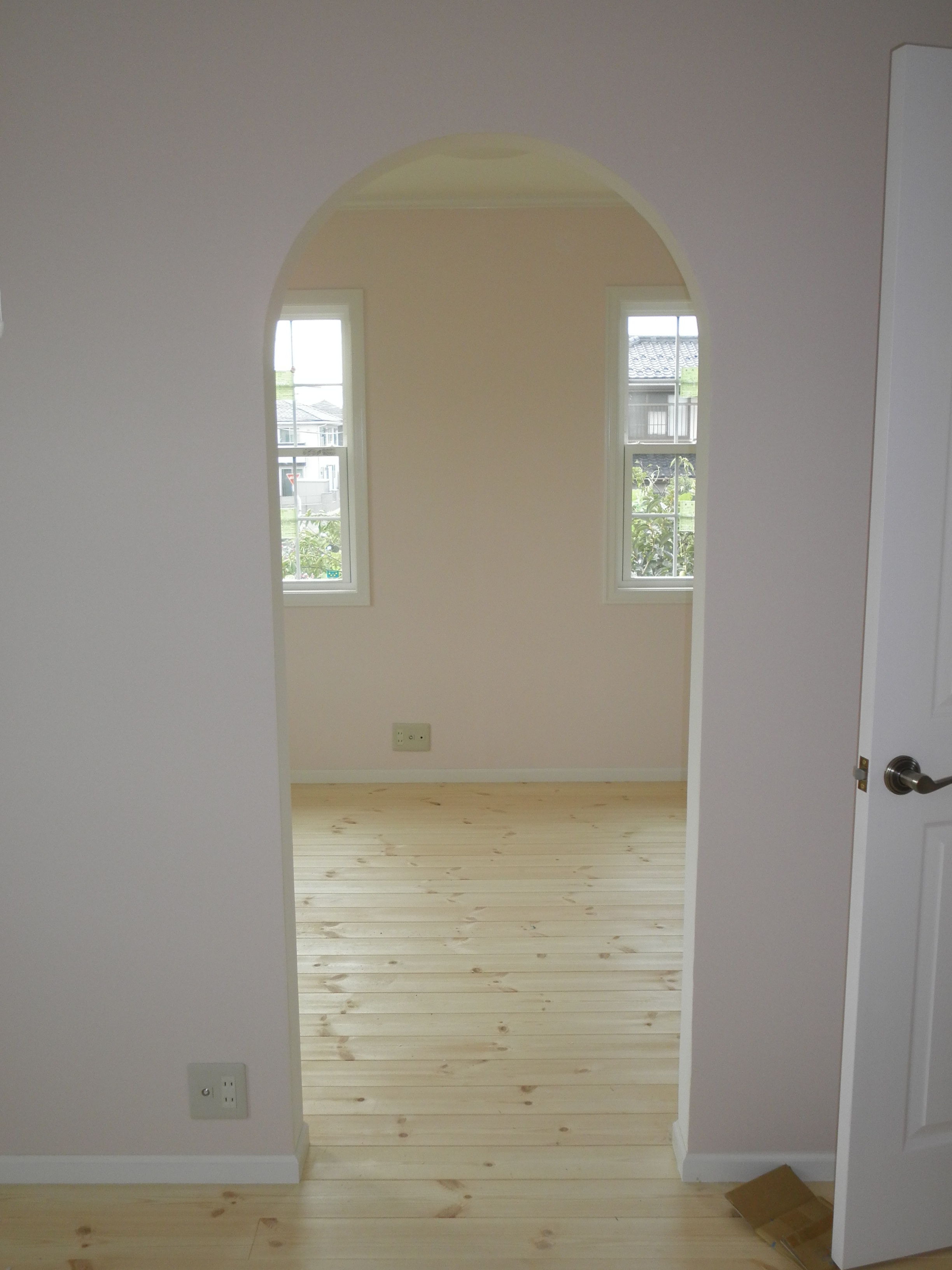 写真は子供室からR下がり壁を通して見た寝室だが、