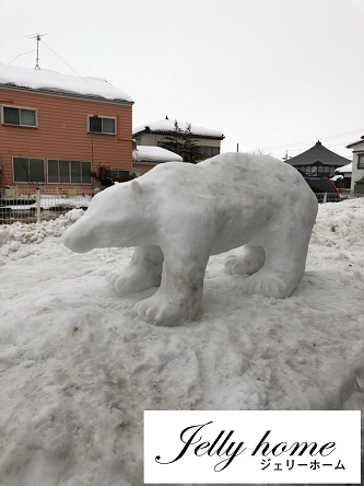 雪の彫刻(シロクマ)が店前に突如として現れ、