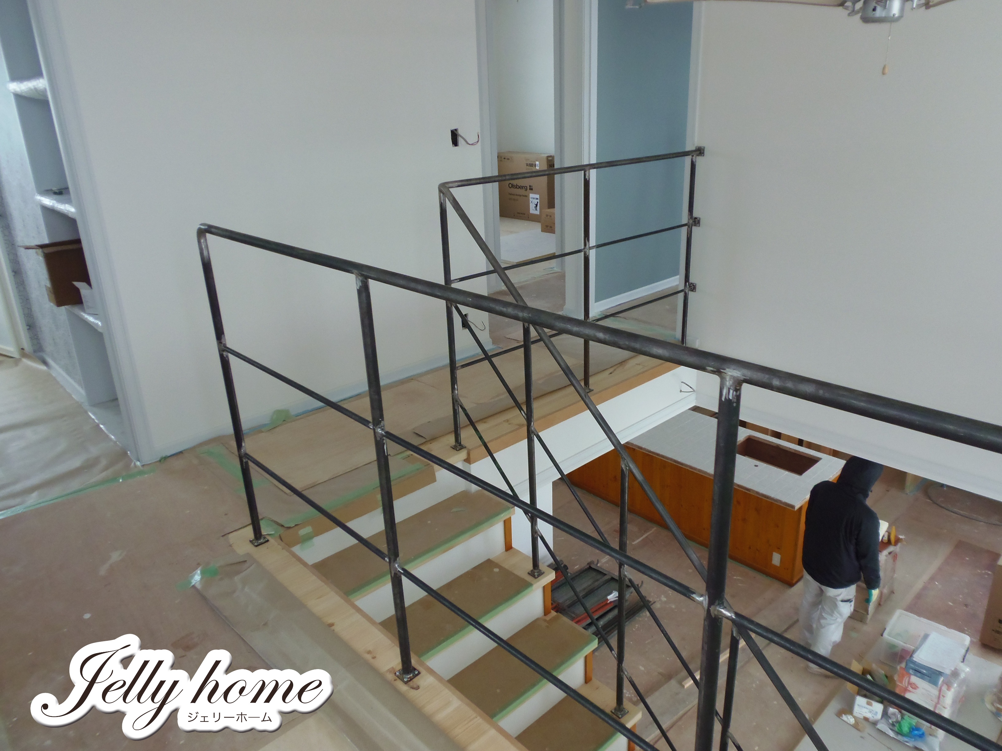 吹抜けのアイアン手擦りが取り付けられたS様邸。