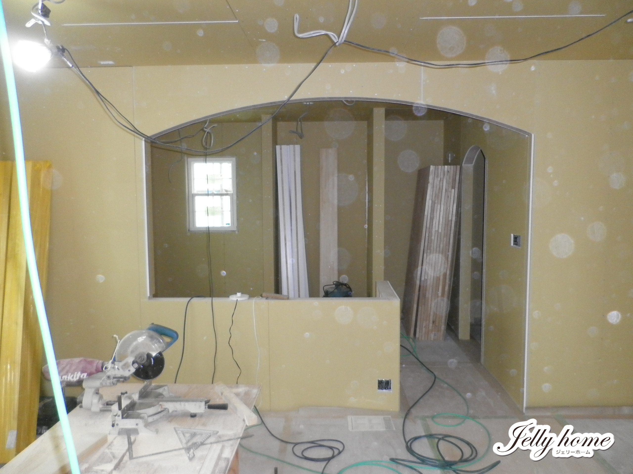 キッチン前のR下がり壁も綺麗に作ってもらった。