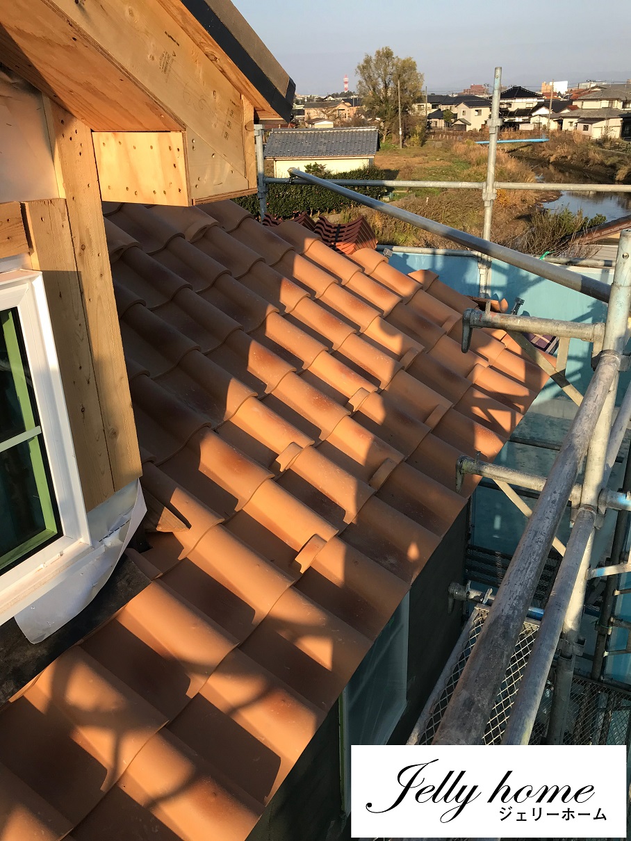 テラコッタ調の1色カラーのS瓦とマッシュルーム色の
