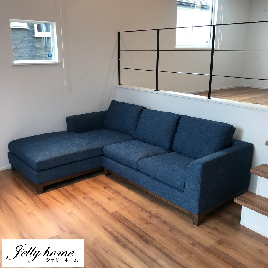 ソファのオリエンタルブルー色は施主様のお気に入り。