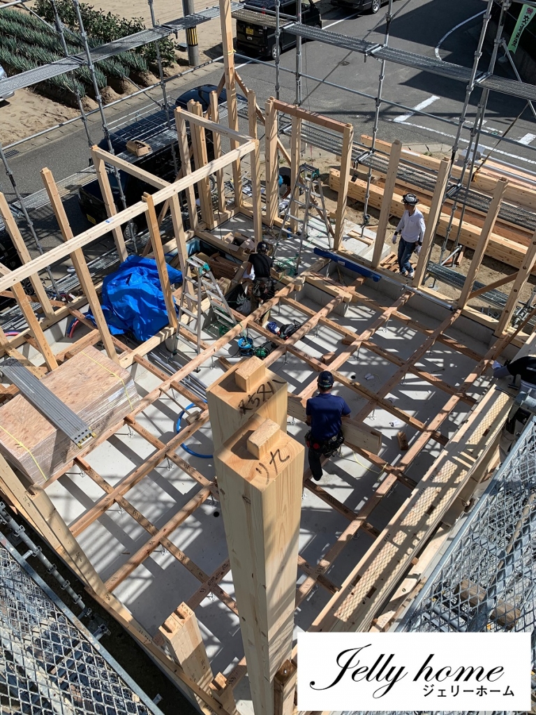 いつも見ている2×4工法のゼロキューブとは違い何か違和感を覚えるが、これはこれで構造計算をしっかりやっているため、かなりごつい骨組みになった。